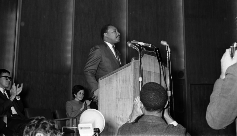 It is five months before his assassination. His extemporaneous talk is titled "The Future of Integration." More than 2,000 are in attendance, far from a full house. Dr. King speaks not only about integration, but also about the importance of education and voting, about the racial violence ravaging the country, and about his staunch opposition to the Vietnam War.