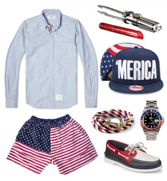 Starting from the bottom up, you’ll want to slip on a pair of Flag Day Sperrys to stay comfortable while dominating those yard games. Next up, the clutch ‘Merica Chubbies are pretty much a required 4th of July wardrobe staple at this point, while the KJP Jack Fritz and Pepsi Bezel Rolex will keep your wrist game tight.