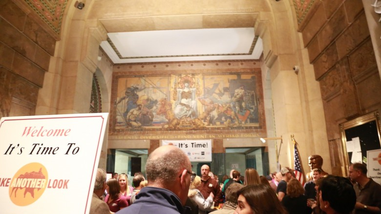 Buffalo lit up as the sun set, the radial streets fanning out below. The Connecting Terminal shone bright and colorful, to the delight of those who took another look at Buffalo from the 25th and 28th floor observation decks of City Hall last Saturday. HarborCenter was flanked by the newly opened rinks where the Erie Canal once flowed, The Silent Poets drew eyes to Canalside, where rubble reigned until just a few years ago. The Labatt Blue silos were a beacon over RiverWorks and a crane flew high over the Buffalo Niagara Medical Campus. The Central Terminal loomed over the East Side, a tantalizing promise of what may become the next phase of the resurgence.