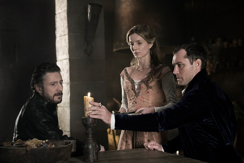 Think the One Ring from Lord of the Rings as King Uther Pendragon (Eric Bana) and his rightful heir are more or less transported through the veil of time and space whenever their hands grip Excalibur—a sword forged from a powerful Mage (wizards are so 1963) staff by an unseen Merlin (rumor is that five potential sequels lay in the pipeline to give our favorite wizened protector his due later). Senses are heightened, magic is rendered impotent, and strength beyond one’s wildest imagination is conjured. Of course the King’s brother Vortigern (Jude Law) would want it for himself. Unfortunately for him, though, his blood only pairs with its steel if Uther and Arthur are dead. So his power to wrest away control must be born from darkness.