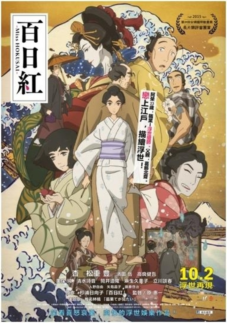 Japanese artist Katsushika Hokusai‘s “Thirty-Six Views of Mount Fuji” series is one of my favorite works of art with “The Great Wave off Kanagawa” being its unforgettable cornerstone. Even so, I never thought to myself, “Why hasn’t anyone made a movie about his life?” If you’ve seen one tortured artist biography you’ve seen them all and if the subject at hand doesn’t fit that angst-fueled mold, what’s the point? There needs to be a hook because seeing a painter paint within a cramped studio is hardly an exciting prospect. After watching Keiichi Hara‘s 百日紅 [Sarusuberi: Miss Hokusai] [Miss Hokusai]—based upon Hinako Sugiura‘s manga—however, it appears that’s all Hokusai’s story contains. The more fascinating subject proves to be his daughter O-Ei, a worthy talent living under his shadow.