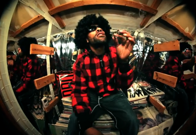 The Funk Doc rips an old, pre College Dropout Kanye track from on top of a stack of records while donning a wig and smoking a blunt... sounds about right. In all seriousness it's a dope verse and a very simple, but entertaining