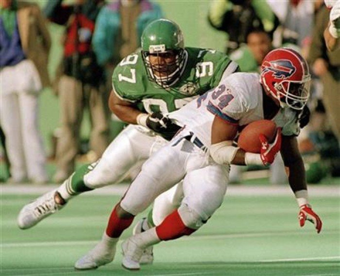 Still, there was something I lacked on my Bills fan resume at that time. I was entering the seventh grade without ever attending a Bills game at Rich Stadium. Lucky for me that changed 26 years ago this weekend. On Sunday October 23rd my dad came into my room and woke me up earlier than usual. At first I thought I forgot about serving a mass, but when I looked at my dad he wasn’t say anything and was holding a Bills rain poncho. He didn’t need to speak a word because I knew exactly what he was saying. It was my time. I jumped down from my top bunk in a frenzy and was ready to go out to Orchard Park in less than 3 minutes. Now, I was obviously excited to attend my first game, but I was equally excited to watch the 6-1 Bills take on the 3-4 Patriots (haven’t said that in a while!). The Bills had won their last two and were looking to take care of business with a team they should beat. Those Patriots were led by Doug Flutie who had few if any fans during his first trip to Buffalo. The Bills took a 23-20 point lead late in the fourth quarter and Bruce sacked Flutie with time running out to end the game. To this day I don’t think my dad has ever given me a high five nearly as powerful as the one he gave me that cool October day.