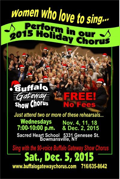 Attention Female Singers! Perform with the award-winning Buffalo Gateway Show Chorus on Saturday, December 5, 2015 at Antonio's Banquet & Convention Center in Niagara Falls, NY!