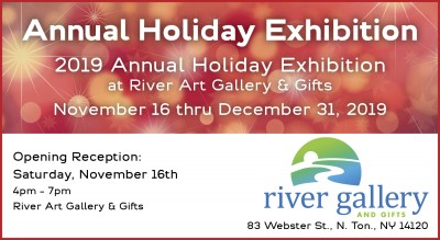 Come meet the artists behind the art, and kick off your holiday season at River Art Gallery & Gifts. The Opening Reception for River Art's Annual Holiday Exhibition is Saturday, November 16th, from 4:00 until 7:00. Attendance is free and open to all. For those who can't make the reception, the artwork will be on display through December 31st, at River Art Gallery and Gifts, 83 Webster Street, North Tonawanda, NY.