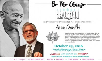 Join the legendary Arun Gandhi, grandson of the great Mahatma Gandhi, for a once-in-a-lifetime opportunity right here in Buffalo, New York. Hear Arun Gandhi speak on non-violence, his grandfather’s legacy and activism. 30 minute lecture & 30 minutes for questions!
