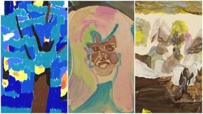 Steve came to Starlight to retire from his job, but stopping work is the last thing he has done. Steve uses clay, pastel and paint with quiet determination. The expressive lines and colors, like his favorites red and brown, in his pastel work, evoke a sense of romantic storytelling. Steve draws inspiration from the other talented artists at Starlight and uses his own life and whatever is on his mind as a springboard for his art. Imaginative elements in his compositions include colorful sidewalks filled with people from his youth and his other cherished subject: cars. “I like drawing cars…cars are often on my mind”. Steve has been embroidering burlap into small tapestries. He has ideas for larger pieces such as a tablecloth comprised of smaller pieces stitched together.