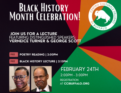 2:15-3:00 FREE - Bringing People Together: Jazz and the Colored Musicians Club. Musician, bandleader, educator, former President of the Colored Musicians Club, George Scott will delve into the history of the Colored Musicians Club, their triumph over adversity, jazz, and the Italian connection.
