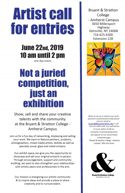 Join us for a fun day of networking, displaying and selling your work. We want to feature painters, sculptors, photographers, mixed media artists, textiles as well as specialty wood, glass and metal artisans.