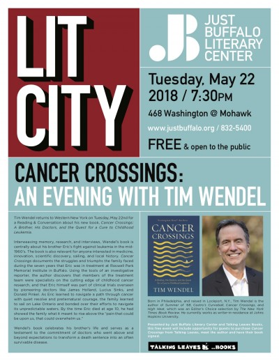 Tim Wendel returns to Western New York on Tuesday, May 22nd for a reading & conversation about his new book, Cancer Crossings: A Brother, His Doctors, and the Quest for a Cure to Childhood Leukemia. This event is a must for anyone interested in medicine, the history of Roswell Park Comprehensive Cancer Center, and a family's courage in the face of the unthinkable.