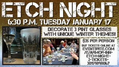 Decorate 3 pint glasses with unique winter themes etched onto the side!