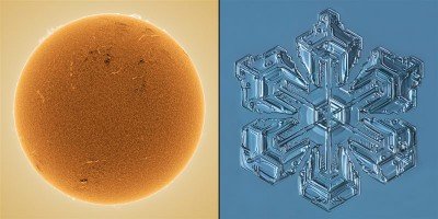 FIRE AND ICE is a collaborative exhibition by renowned astral photographer Alan Friedman and photomicographer Douglas Levere. For this exhibition Friedman’s telescopic photographs of the Sun’s surface, which reveal it’s undulating, almost painterly topography, have been paired with Levere’s microscopic studies of snowflakes, exposing the hidden architecture of these tiny and delicate natural wonders.
