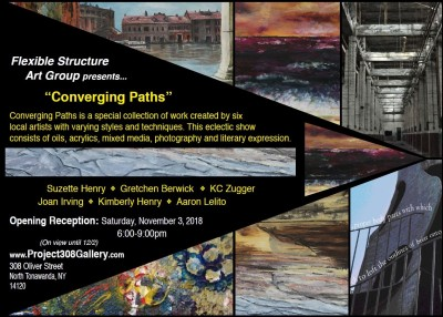 Join us for the opening reception of the Flexible Structure Art Group exhibition on Saturday, November 3rd, 6-9PM. The Flexible Structure Art Group is a collective of six Western New York artists who work regularly meet with a goal to elevate each other’s artistic practice.