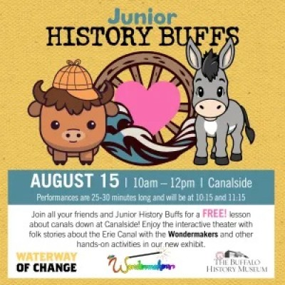 Join all your friends and Junior History Buffs for a FREE! lesson about canals down at Canalside! Enjoy the interactive theater with folk stories about the Erie Canal with the Wondermakers and other hands-on activities in our new exhibit.