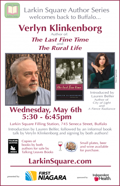 Larkin Square is pleased to welcome writer Verlyn Klinkenborg back to Buffalo for a special edition of the Larkin Square Author Series. Mr. Klinkenborg will be joined by his friend, fellow writer, and fellow expat Buffalonian Lauren Belfer. Ms. Belfer will introduce Mr. Klinkenborg and both will participate in a Q and A along with a book signing.