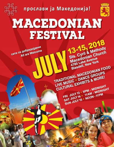 Traditional Macedonian food, live music, youth dance group, cultural exhibits, kids' games, and more.