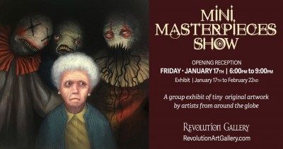 The return of “MINI MASTERPIECES” — a group exhibit of all 5” x 5” works! This was so popular in 2019 (Revolution Gallery’s first “call for work” juried show) we have decided to make this an annual exhibit!