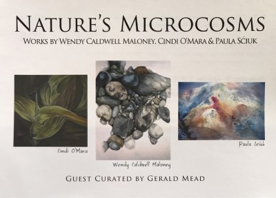 “Nature’s Microcosms” is a three-person Art Exhibit at the Kenan Center featuring works by Watercolorist, Wendy Caldwell Maloney, Color Pencil Artist, Cindi O’Mara, and Photographer, Paula Sciuk, Curated by Gerald Mead.