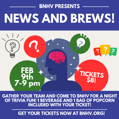 Explore the wild and wonderful world of the past with our News and Brews series! Our host will take you on a jaunt through the strange pieces of New York State past, while participants can guess where the story goes next with trivia! Our News and Brews is full of fun, whimsy, and a hilarious good time! So grab your team, and head on over to the village for a night of fun!