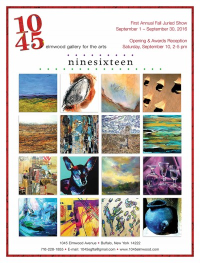 Opening and Awards Reception with the artists at the first annual juried exhibition entitled "nine sixteen" at 1045 Elmwood Gallery for the Arts on Saturday, September 10, 2–5 pm .
