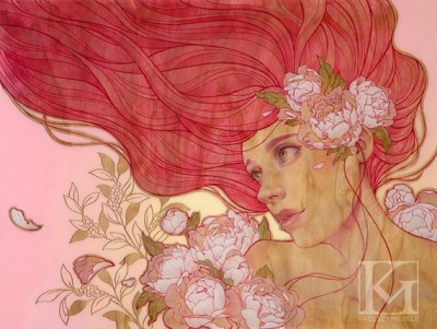 Capturing the essence of several beauties, Belle highlights Merkle's passion for portraiture. Her subtlety of expression creates exaggerated moods and reveals a glimpse into the souls of her muses. She uses a blended hyper-realist, yet surrealist style reminiscent of Art Nouveau, Art Deco, and Pop-Art, and a variety of mediums such as oil, acrylic, and colored pencil. She is able to imbue grand personality and individuality to her subjects through her attention to detail and color, and her desire to tell a story through the deeper meaning of her imagery.