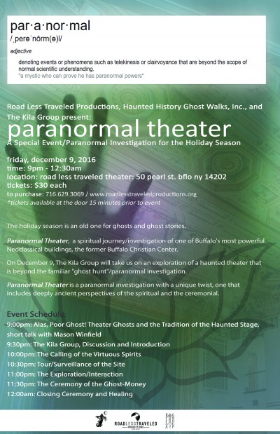 The holiday season is an old one for ghosts and ghost stories. Road Less Traveled Productions, Haunted History Ghost Walks, Inc., and The Kila Group have a unique commemoration for the season of 2016: Paranormal Theater, a spiritual journey/investigation of one of Buffalo's most powerful Neoclassical buildings, the former Buffalo Christian Center.
