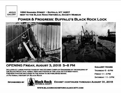 The Black Rock Historical Society announces a photographic exhibit that includes 21 large photos, taken by the US Army Corps of Engineers of the building of the Black Rock Lock from the early nineteenth century, workers who built it and its construction are shown in extraordinary detail. The exhibit also includes an aerial view and photos of the Lock as it is seen today.