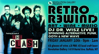 Revolution Gallery celebrates the music of The Clash and Big Audio Dynamite on Friday January 10th for our monthly dj dance event “Retro Rewind.”