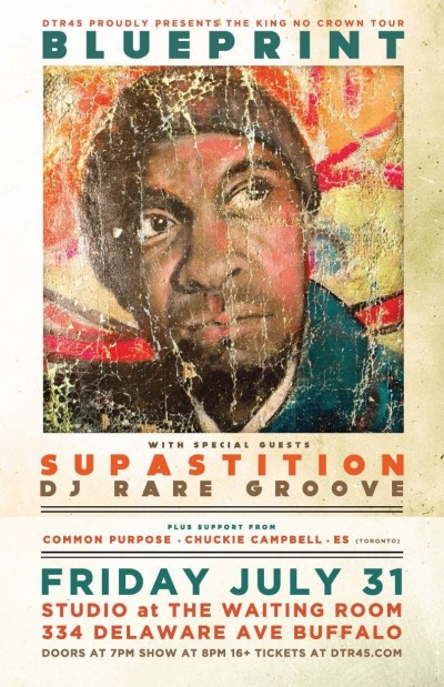 Friday July 31. Rhymesayers artist BLUEPRINT, with DJ Rare Groove Supastition, Chuckie Campbell, Es, and Common Purpose. 7pm at Studio @ Waiting Room. 334 Delaware Avenue. All ages. $10