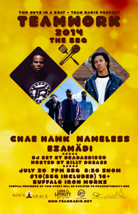 Following the screening, Chae and Team Radio will host the third annual TEAMWORK BBQ Sunday evening at Buffalo Iron Works in the city’s Cobblestone District. This year, Chae has gathered the talents of Nameless and Ezamädi for three live performances, with additional DJ sets by DeadAsDisco. Acts will follow a family-style barbecue at Iron Works, as the hosts encourage camaraderie and community within the local music scene and offer an environment to foster it in. In June, Team Radio teamed up with the Western New York Book Arts Center to hand-print exclusive posters for the event. Students from Tapestry Charter School were invited for a crash course in letterpress and spent an afternoon printing the posters, which will be sold at TEAMWORK2014, with proceeds being donated to Peace of the City.