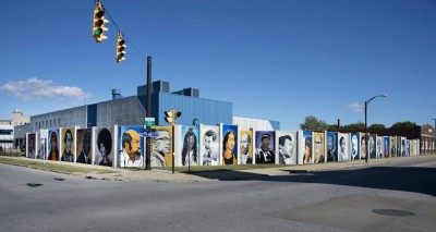 "The Freedom Wall" depicts the portraits of 28 notable civil rights leaders in American history, past and present, on a large wall at Michigan Avenue and East Ferry Street in Buffalo. The scale of the wall creates a unique opportunity to present a historical narrative that recognizes well-known national activists alongside equally important but less-widely-known local leaders.