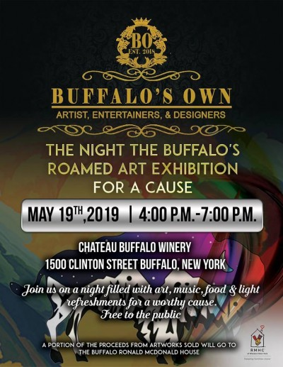 Original artwork, limited edition Roaming Buffalo T-shirts, and custom home décor items will be on exhibit. A portion of the proceeds of artworks sold will go to the Buffalo Ronald McDonald House.