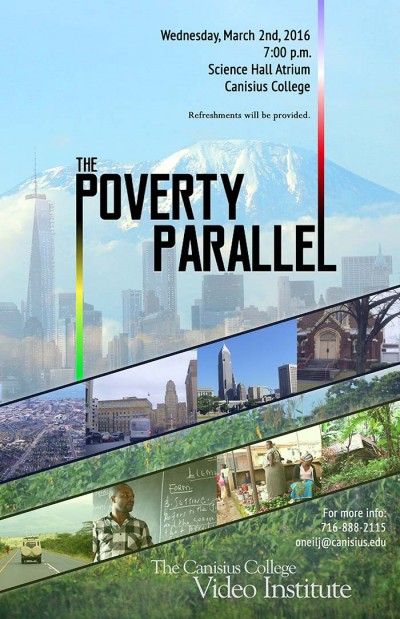 The Canisius College Video Institute presents the premiere screening of The Poverty Parallel, a documentary that challenges perceptions of poverty, on Wednesday March 2nd at 7pm in the Science Hall Commons. The event is free and open to the public. Following the screening there will be a panel discussion and refreshments.