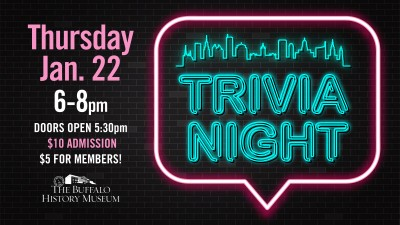 Test your knowledge of our city, pop culture, and beyond at the Museum’s Buffalo History trivia night! Bring a friend, or meet new friends for team-based Buffalo history trivia inside the State Court. Beer and wine will be available for purchase, and prizes will be awarded for the winners! Maximum of four members per team.