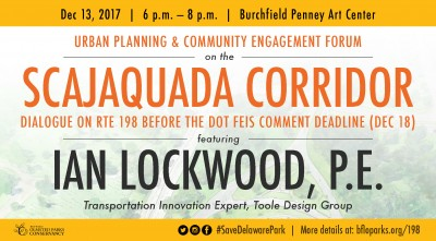 This event features an expert presentation and dialogue on Route 198 and is purposefully scheduled prior to the NYSDOT's Final Environmental Impact Statement (FEIS) comment deadline (Dec 18).