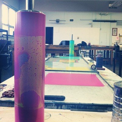 A viscosity monotype is a one of a kind print made by using two or more inks with different viscosity, loose and stiff, which resist one another when rolled onto the plate. In this workshop, participants will utilize this technique to create their own vibrant, colorful works of art.