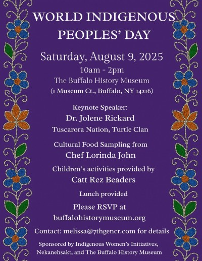 Join us on Saturday, August 9th 10am-2pm at The Buffalo History Museum as we celebrate World Indigenous Peoples’ Day with keynote speaker Dr. Jolene Rickard of the Tuscarora Nation, Turtle Clan. There will also be cultural food sampling from Lorinda John and children’s activities provided by Catt Rez Beaders.