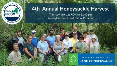 In honor of Invasive Species Awareness Week, the Western New York Land Conservancy and WNY Partnership for Regional Invasive Species Management (PRISM) are teaming up to remove invasive shrubs including bush honeysuckle and common buckthorn from Kenneglenn Nature Preserve. Please bring gloves if you have them. Tools and lunch will be provided.