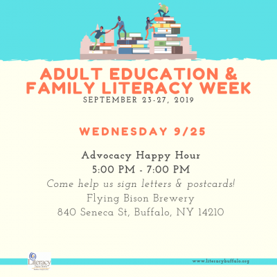 Do you believe everyone should have a chance at being literate? Join us to sign letters and postcards in support of Adult Education and Adult Literacy! This event is part of a series of events for Adult Education & Family Literacy Week hosted by Literacy New York Buffalo-Niagara.