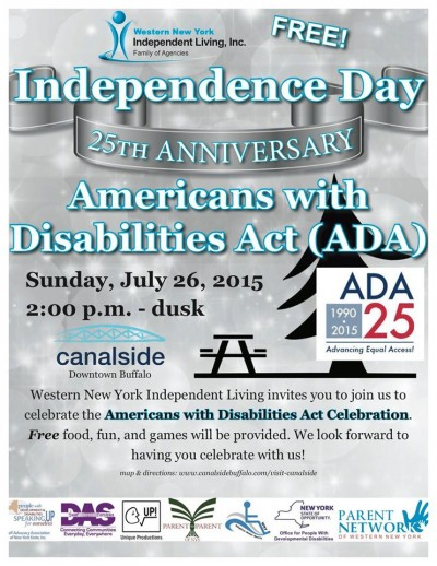 The Western New York WNY Independent Living Inc. (WNYIL) and their collaborators invite you to participate in the Americans with Disabilities Act (ADA) 25th Anniversary Independence Day Celebration!!