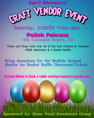 Come on out to support your local small businesses. We have some fabulous and unique crafters as well as some of your favorite vendors too! Looking for something a little different? We have psychic readings and $1/min massages available and a cash bar starting at 1pm. FREE ADMISSION. 11AM-3PM. You don't need to be present to win the Basket Raffle. Bring donations for The Buffalo Animal Shelter for extra tickets. To book a table contact Maria eventpreneurpro@gmail.com