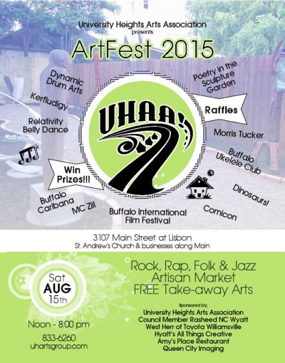 Produced and presented by the University Heights Arts Association, the third annual UHAA! Festival will compliment the University Heights Arts Association Arts Crawl Partnering Program. Throughout the year, the UHAA Crawl places art in local businesses and public spaces. Artists and businesses form ongoing relationships that benefit both. The festival will bring entertainment to Crawl participants on Main Street, from St. Andrew's Church (Lisbon Ave.) to NIagara Falls Boulevard.