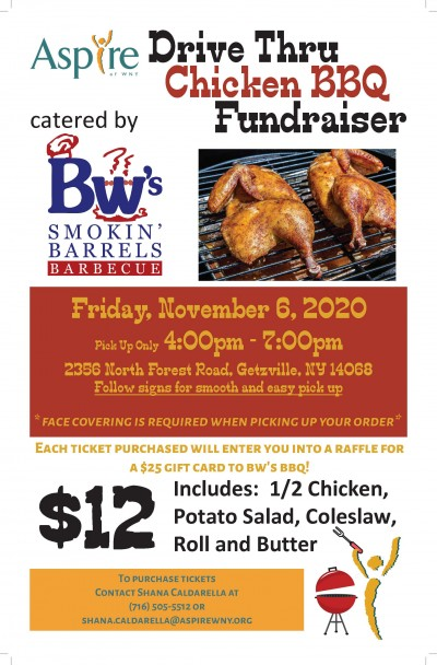 Aspire's Chicken BBQ takes place of November 6, 2020 with pick up only available between 4pm-7pm.