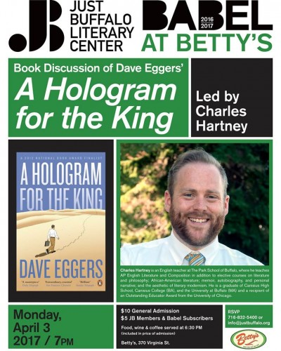 370 Virginia Street Buffalo, NY 14201Join The Park School of Buffalo's Charles Hartney as he leads a discussion of Dave Egger's "A Hologram for the King" in preparation for his visit to Buffalo on April 20th.