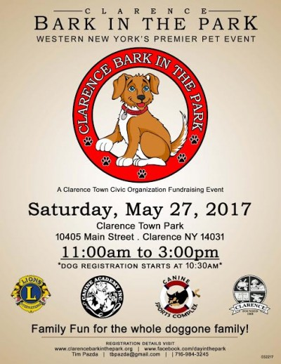 Event made possible by the Clarence Lions, Canine Academy, Inc., Canine Sports Complex, Town of Clarence and Friends of Bark in the Park.