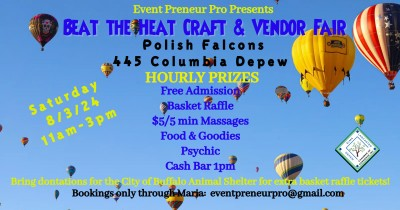 Come on out to support your local small businesses from 11am-3pm at the Polish Falcons, 445 Columbia, Depew. We have some fabulous and unique crafters as well as some of your favorite vendors too! FREE ADMISSION. HOURLY PRIZES! BASKET RAFFLE! $5/5 mini massages! Goodies! Psychic readings! Cash Bar at 1pm! There's something for everyone! You don't need to be present to win the Basket Raffle. Bring donations for The Buffalo Animal Shelter for extra tickets/discounts. Bookings: contact Maria, eventpreneurpro@gmail.com.