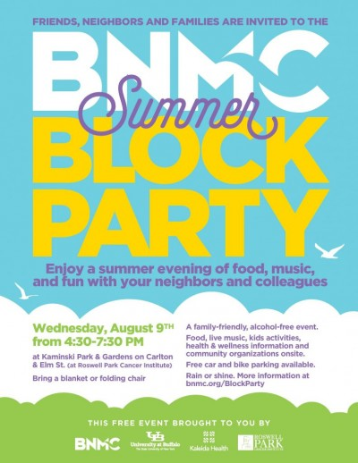 Grab a blanket or a folding chair and head to the BNMC for the 1st annual Block Party! This family-friendly, alcohol-free event will feature live music, food and drinks, kids activities, and community organizations and is a great opportunity to meet your Medical Campus neighbors and employees.