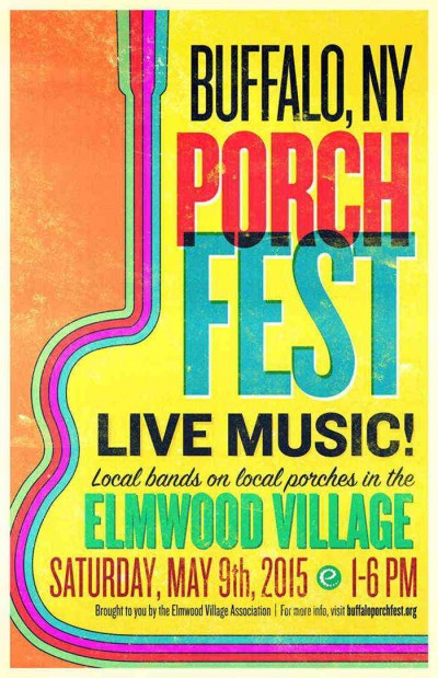Buffalo Porchfest Spring 2015 will take place on Saturday, May 9th from 1:00-6:00pm in the Elmwood Village area.
