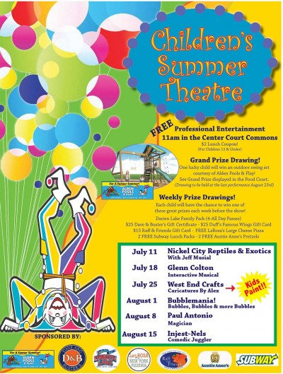 Enjoy FREE entertainment inside the Eastern Hills Mall with this years Children's Summer Theatre! Weekly prize drawings, $2 lunch coupon to the food court and the chance to win this years Grand Prize Swing set from Alden Pools and Play!