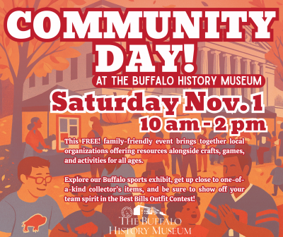 This FREE event will feature organizations offering resources, and will also include crafts, games, and activities for the whole family. You will be able to pet animals, see one-of-a-kind sports collector’s items, take a walk through our sports exhibit, and eat. Don’t forget to dress up for the Best Bills Outfit Contest!
